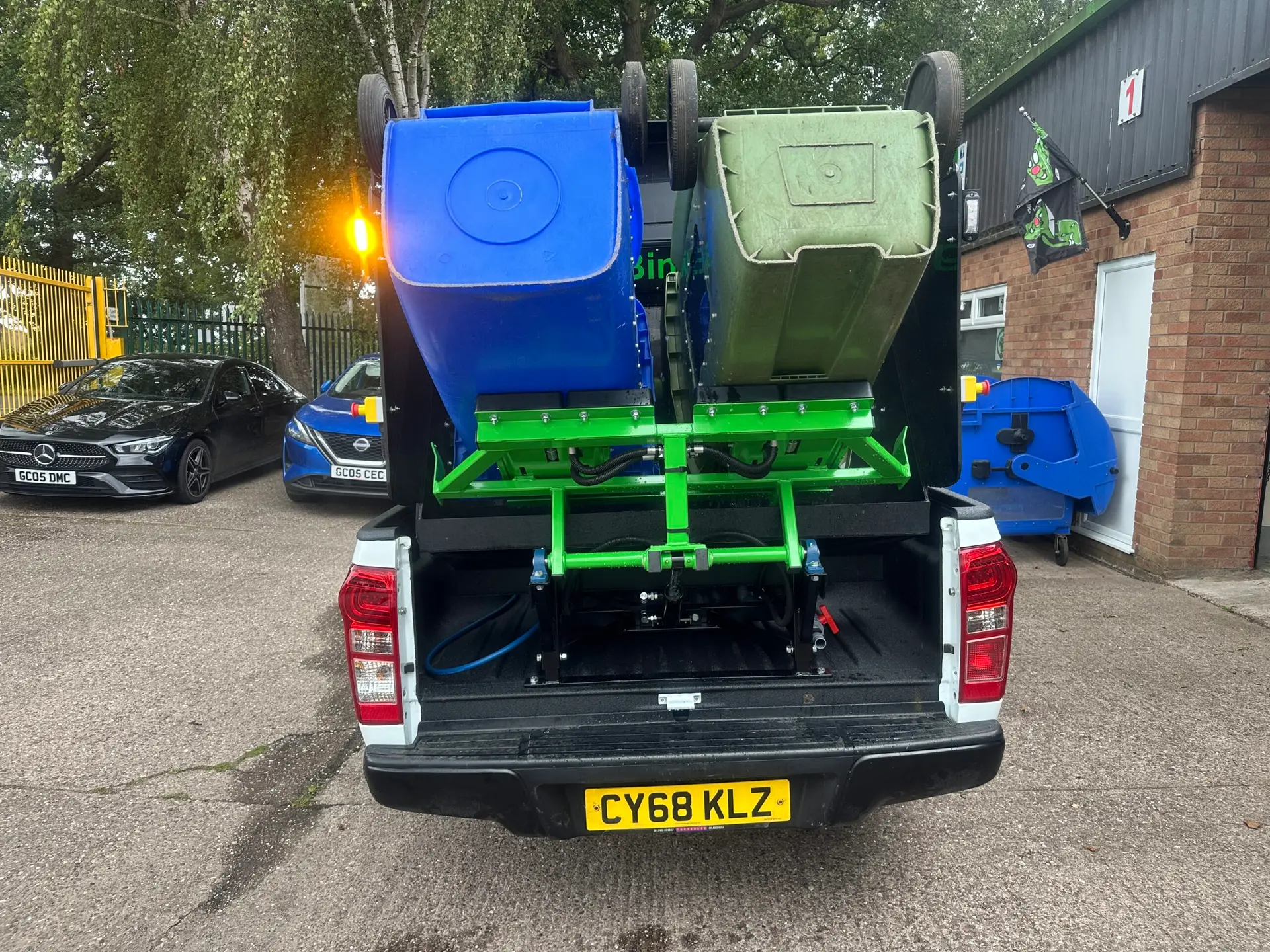 Its hydraulic lifting frame handles two domestic bins or any RAL-standard commercial containers, while the dual orbital high-pressure wash heads clean the inside, and a lance system ensures spotless exteriors. For peace of mind, each unit is equipped with 360° flashing beacons to meet the highest health and safety standards.