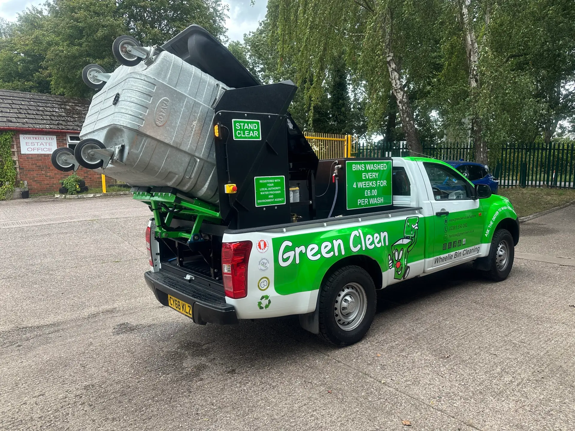The Green Cleen pickup-mounted Duplex bin cleaning system has been refined over nearly 30 years and remains the market leader in its field. As the first pickup-mounted bin cleaning solution available, the Duplex is designed to clean both domestic wheelie bins and commercial waste containers. It can be fitted to most single-cab pickup trucks, giving operators excellent productivity and manoeuvrability. Each unit is equipped with a petrol engine, a high-pressure water pump, hydraulic bin lift, two fixed orbital wash heads for thorough interior cleaning, and a hand lance for exterior washing. The system reclaims and recycles wastewater, ensuring full compliance with Environmental Agency standards and local water authority regulations. The Duplex is European CE Certified.